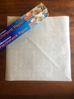 It is dissapointing when you want to try a new recipe and you don't have the right size pan. But you can make a pan with a sheet of parchment paper! We find Reynolds Kitchens Parchment Paper with Smart Grid handy. This shallow parchment paper pan is good when you are making Florentine biscuits and Swiss roll!