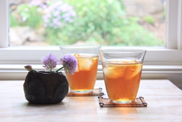 Put 10g (1/3 oz) of hojicha loose leaf (or 5 teabags—2g each) in one quart of cold water and set aside for 4 hours or overnight.